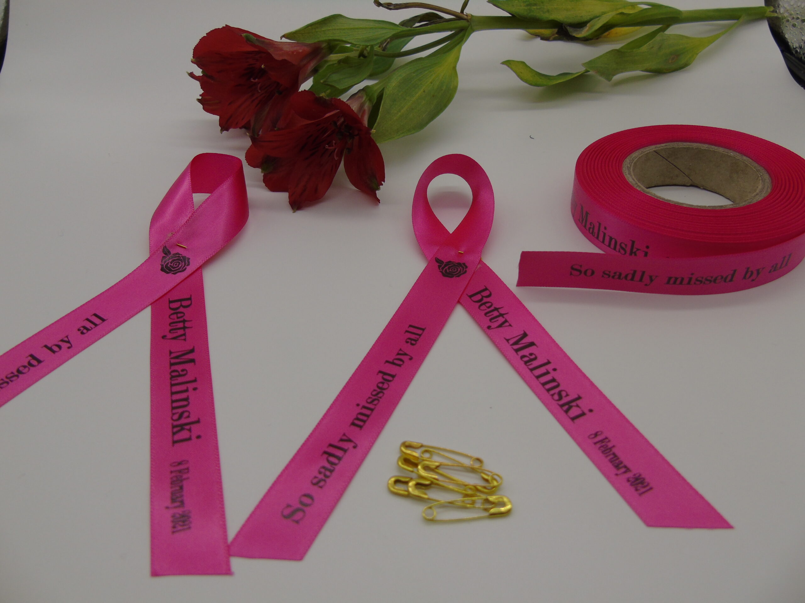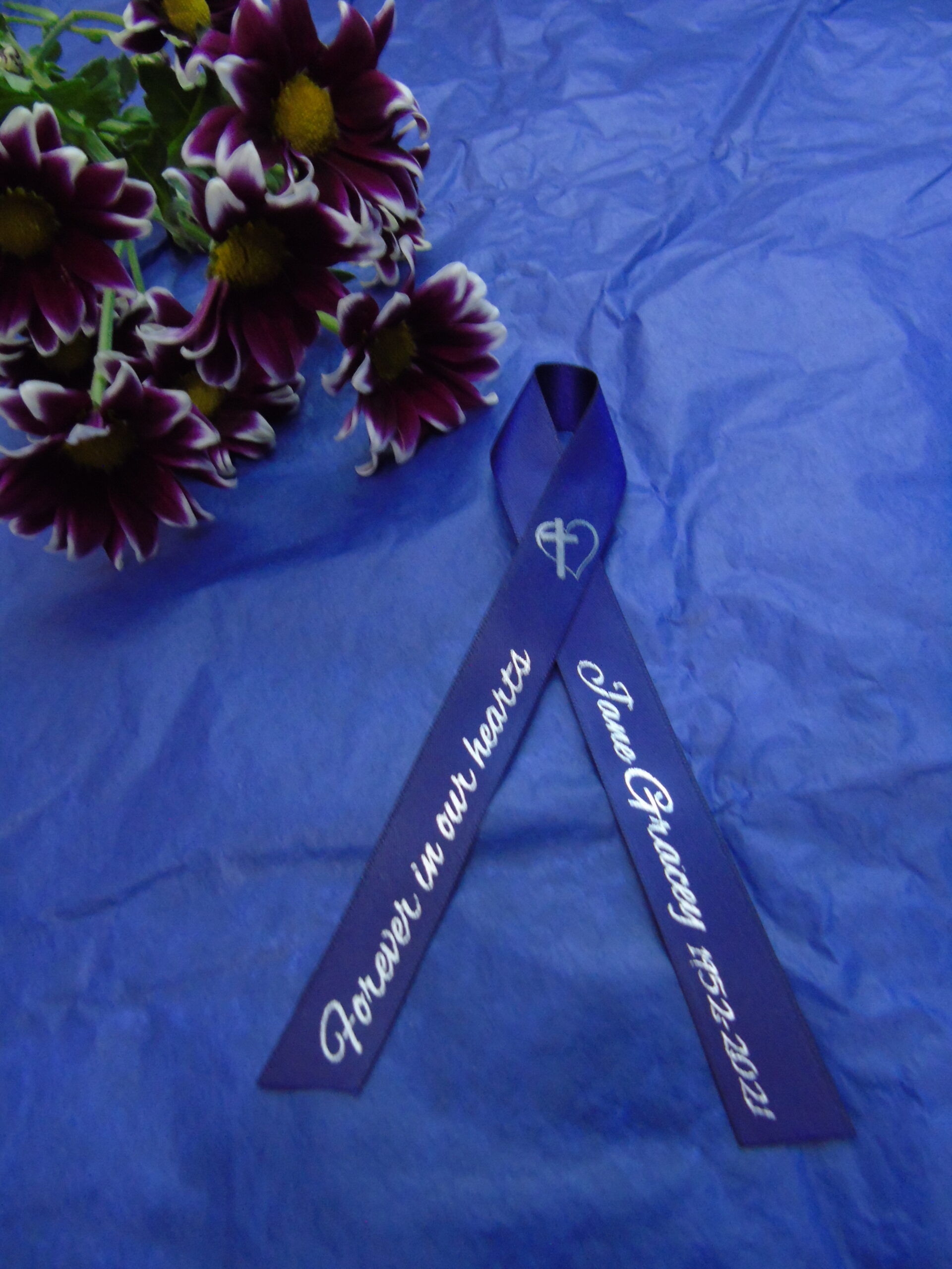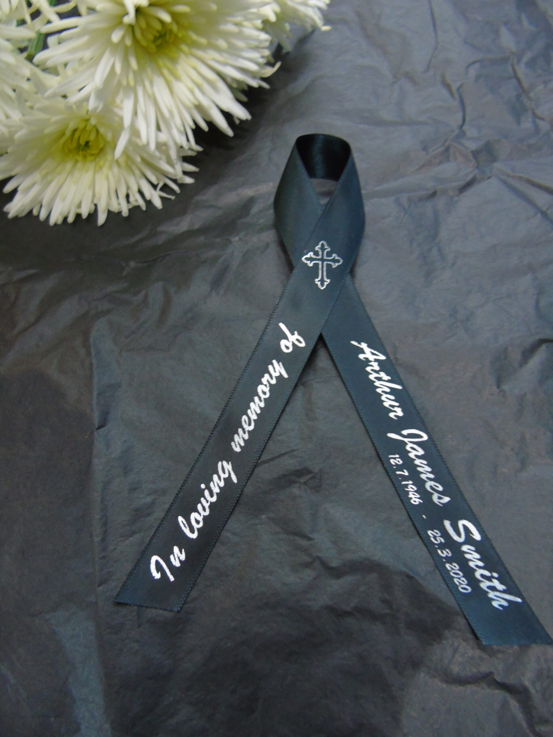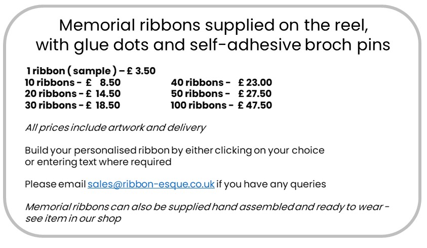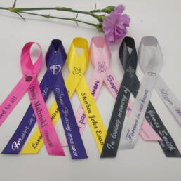 Commemorate your loved one with our  beautiful personalised memorial ribbons.